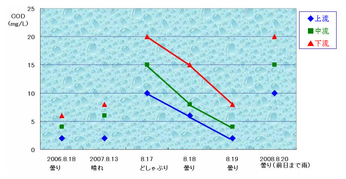 COD 20 15 8 20 上流は1以下、中流・下流は3以下